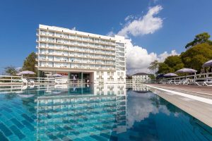 Отель расположен на первой береговой линии в 50 метрах от моря.
