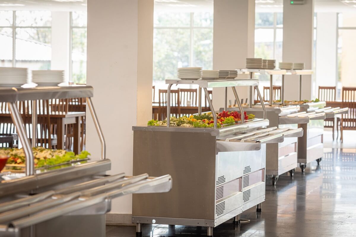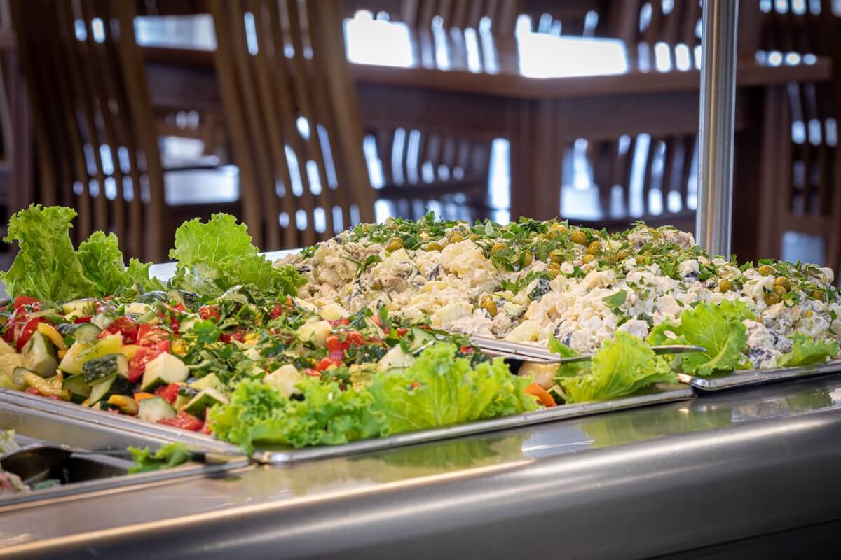Шведский стол — завтрак 8:00-10:00, обед 13:00–15:00, ужин 18:00-20:00