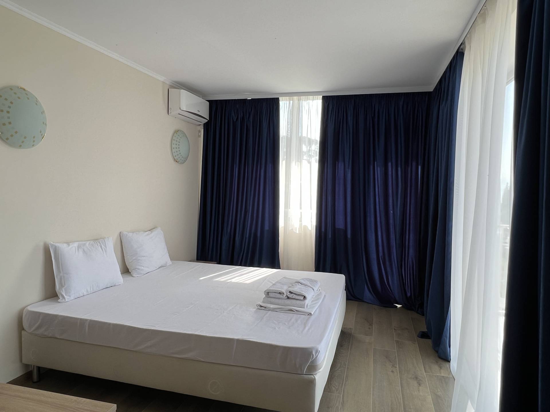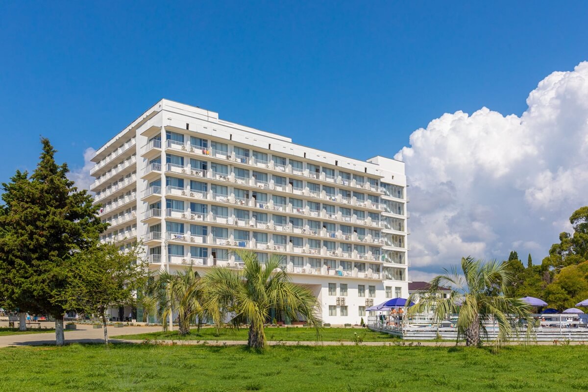 Отель расположен на первой береговой линии в 50 метрах от моря.