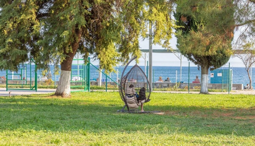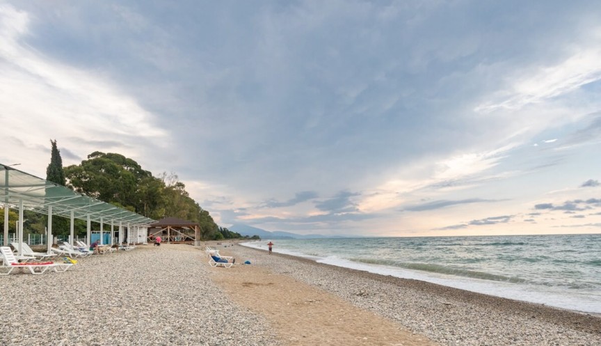 В 5 минутах ходьбы находится городской мелко-галечный пляж. На побережье установлены раздевалки, есть навесы, работает прокат шезлонгов и зонтиков.